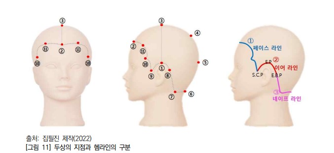 두상의 기본 포인트는 헤어디자인 시술 시 얼굴의 균형과 비율을 잡는 데 매우 중요합니다.