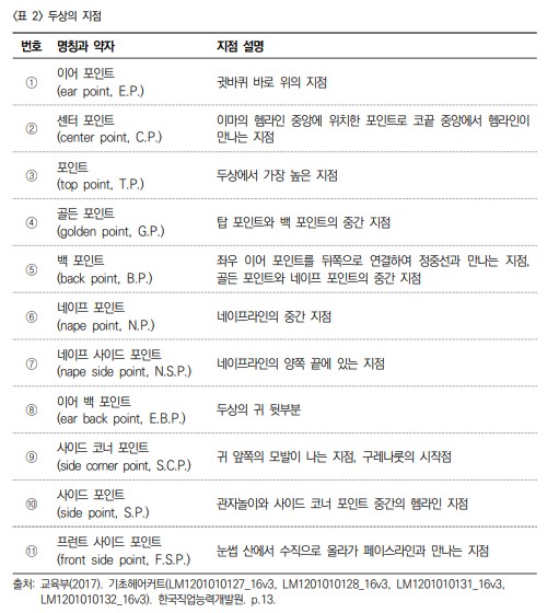 두상의 기본 포인트는 헤어디자인 시술 시 얼굴의 균형과 비율을 잡는 데 매우 중요합니다.