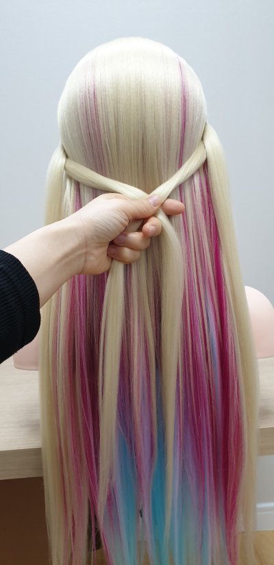 - Step 4: 두 가닥을 함께 묶어 디스코 머리 스타일을 완성합니다.