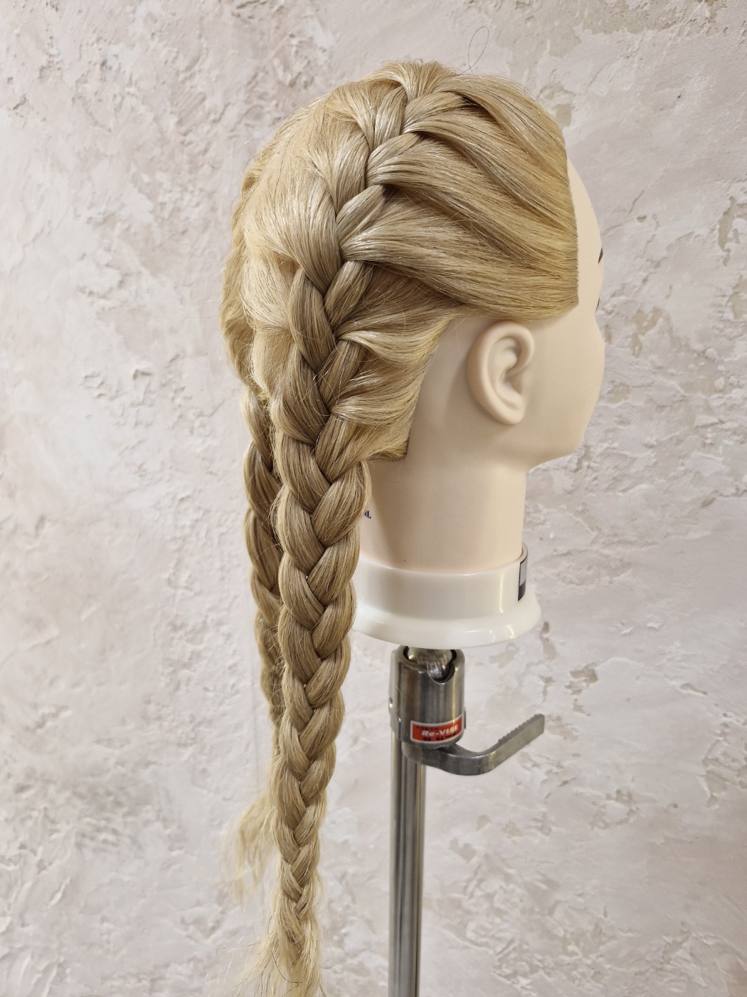4. 끝마무리: 땋기를 마친 후, 끝머리를 묶어 줍니다.