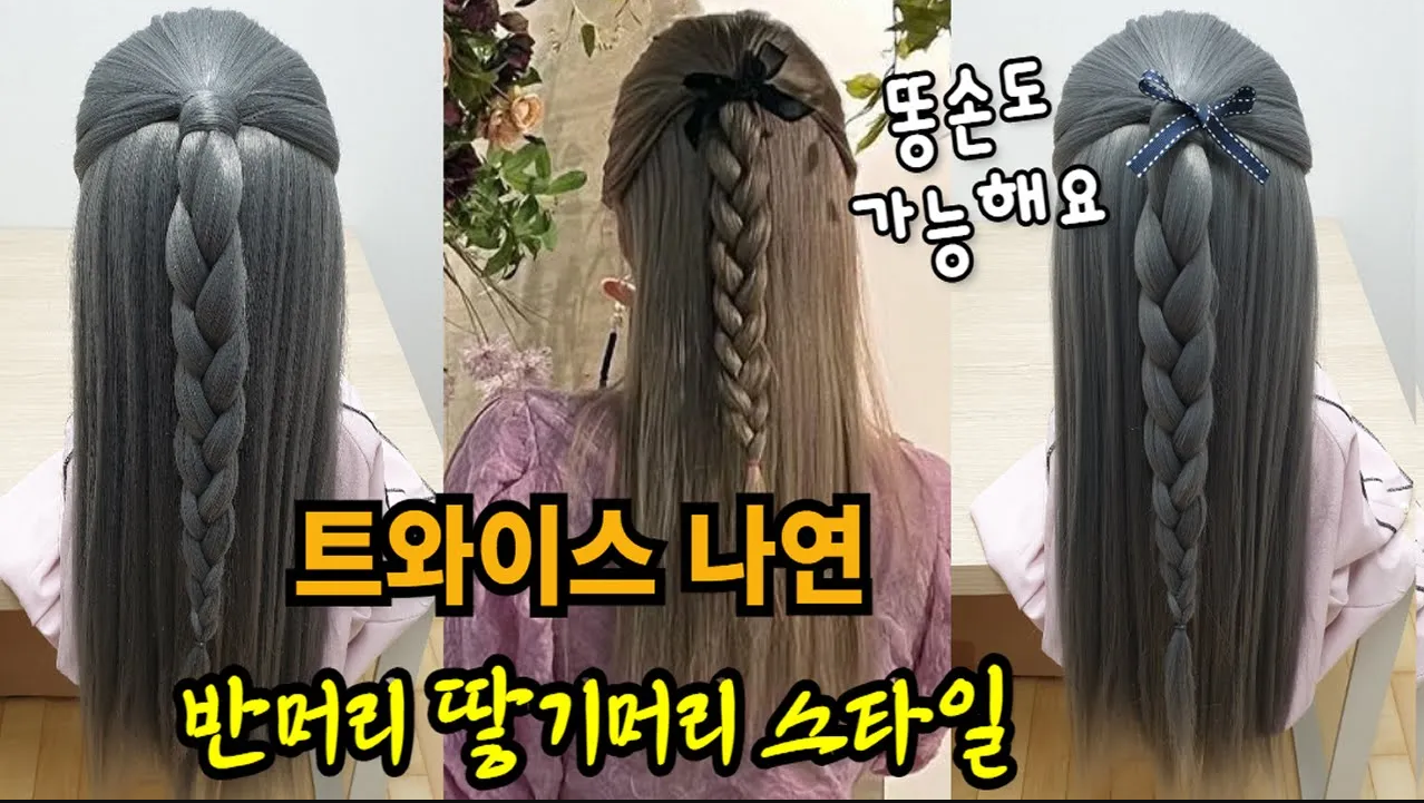 반머리 땋기머리 스타일