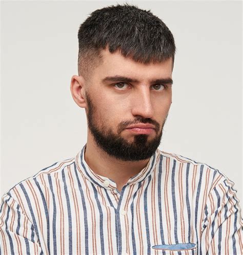 시저 컷(Caesar Cut) 스타일은 전방향으로 짧게 자르고,