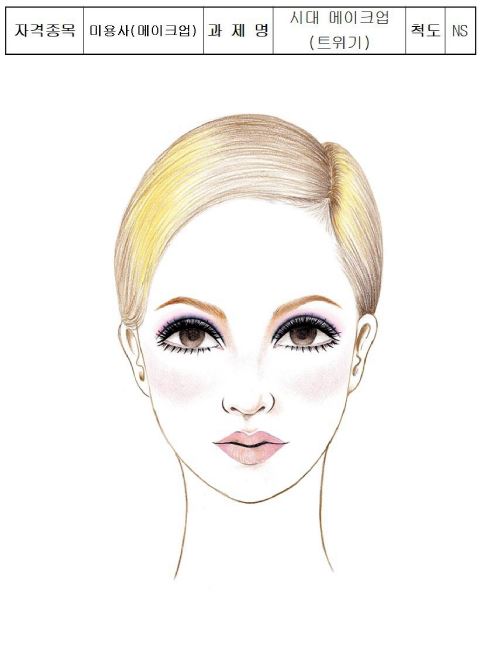 1960년대를 대표하는 영국 모델 '트위기(Twiggy)'의 독보적인 메이크업 스타일로, 큰 인형 같은 눈매와 파스텔컬러의 사랑스러운 분위기가 특징이에요. 시험장에서 제대로 표현하면 심사위원들의 눈길을 사로잡을 수 있는 스타일이죠!
