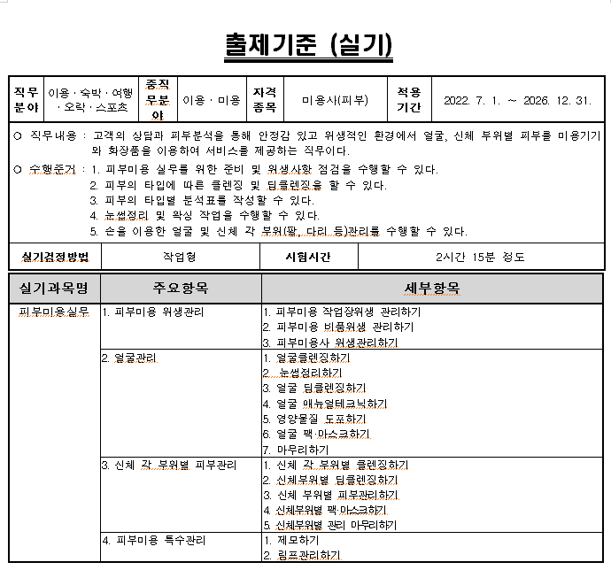 오늘은 피부관리사 자격증의 수수료와 출제기준에 대하여 알아보겠습니다.