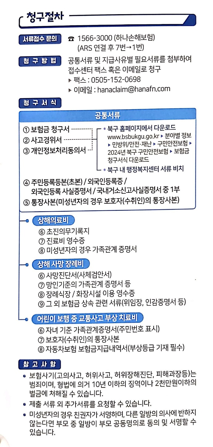 우연하게 부산광역시 북구 구민안전보험 안내서를 보게 되었습니다.