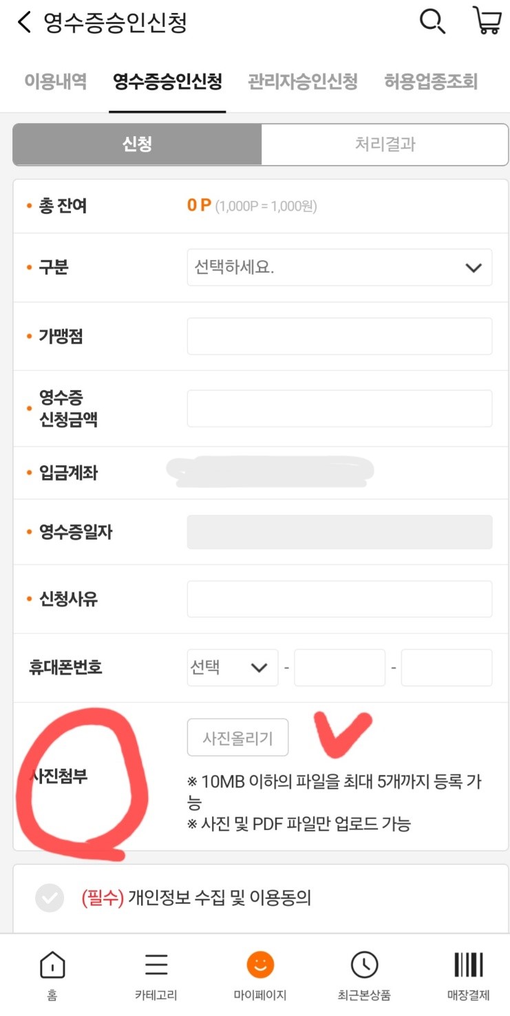신청이 완료되면 행정실 담당자에게 복지 포인트 영수증 신청을 했다고 이야기합니다.
